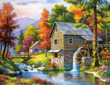 Алмазная вышивка «Осень у речной мельницы» 21x25 см
